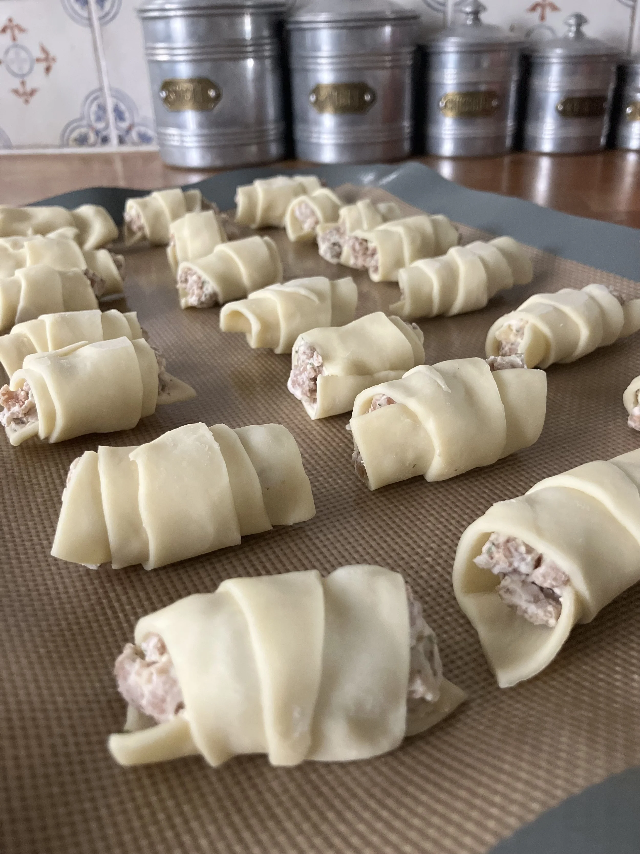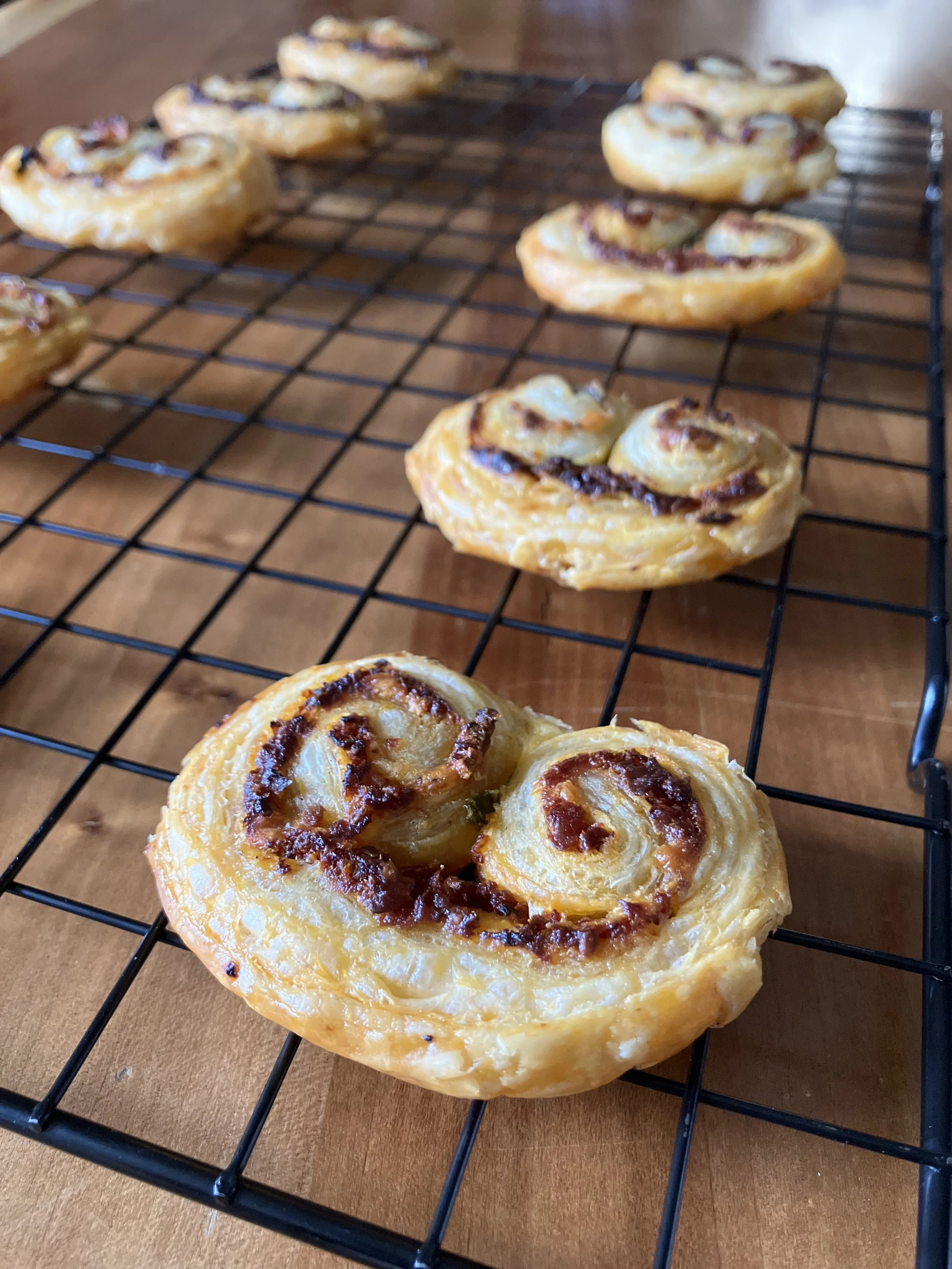 When I have kids coming to the apèro I make “pizza” flavored palmiers with tomato tapenade from the weekly market and some cheese.